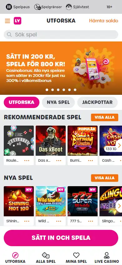 Logga in direkt med BankID. Du behöver inte fylla i några uppgifter vilket innebär att du är igång och spelar inom en minut. Även dina insättningar kan göras via BankID om du vill.